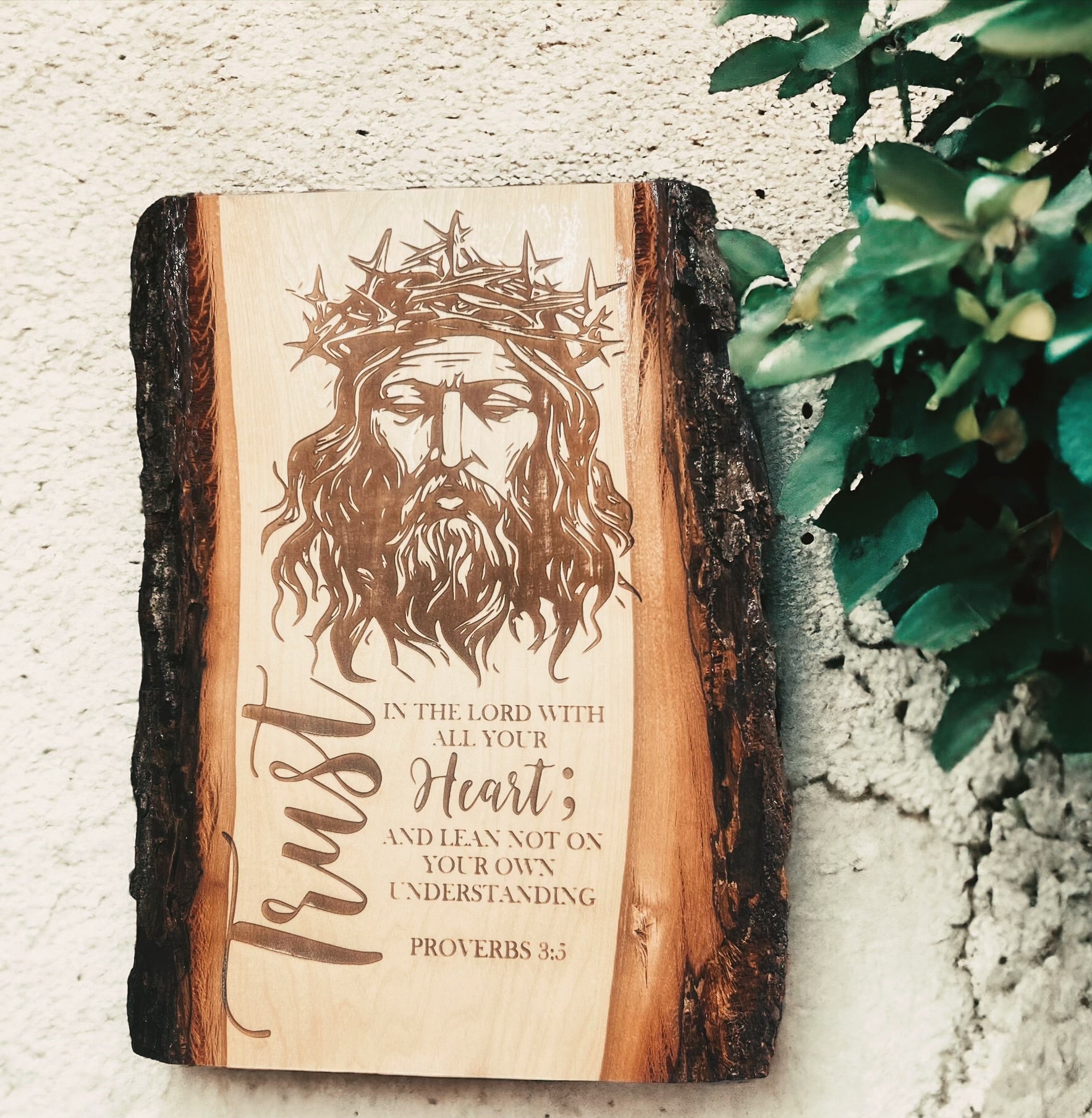 “Trust in the Lord” Engraved Barkside Wood Plaque